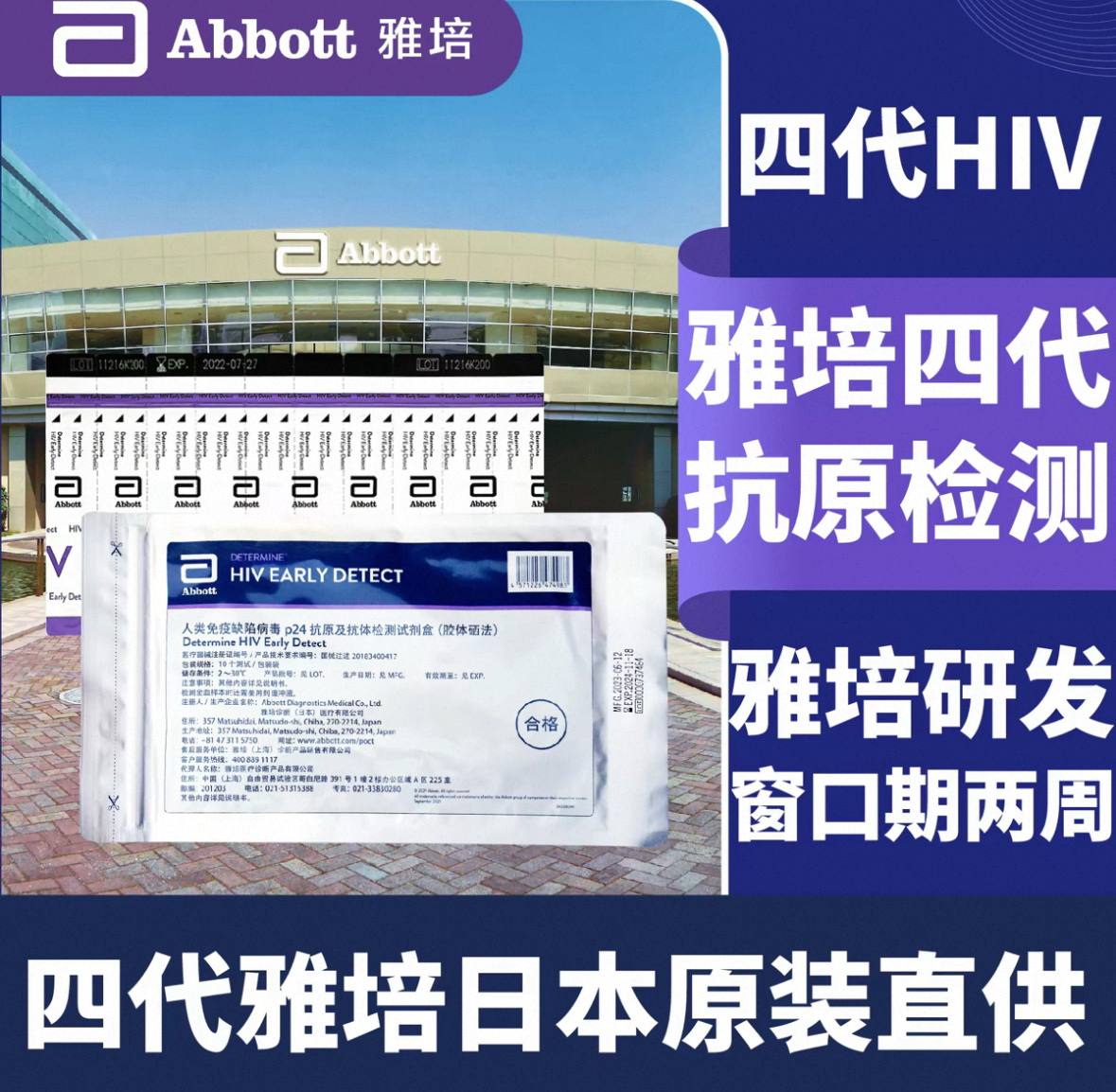 同城闪购--Abbott 雅培 4代艾滋日本原装进口四代HIV--雅培抗原艾滋病检测试纸培